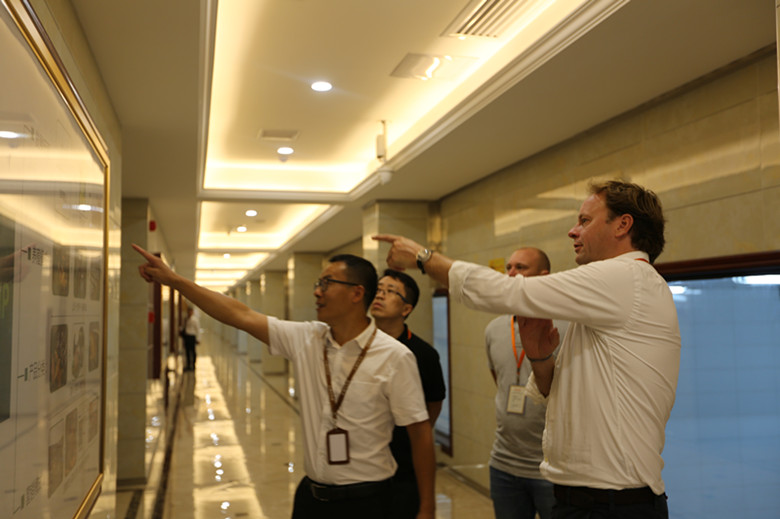 來到湘佳食品產(chǎn)業(yè)園,Olivier一行參觀了湘佳文化長廊、流水生產(chǎn)線、質(zhì)控監(jiān)測中心。湘佳食品產(chǎn)業(yè)園副總經(jīng)理孫元盛全程陪同,熱情地向客人們介紹了現(xiàn)代化屠宰冷鏈生產(chǎn)線的相關(guān)情況。