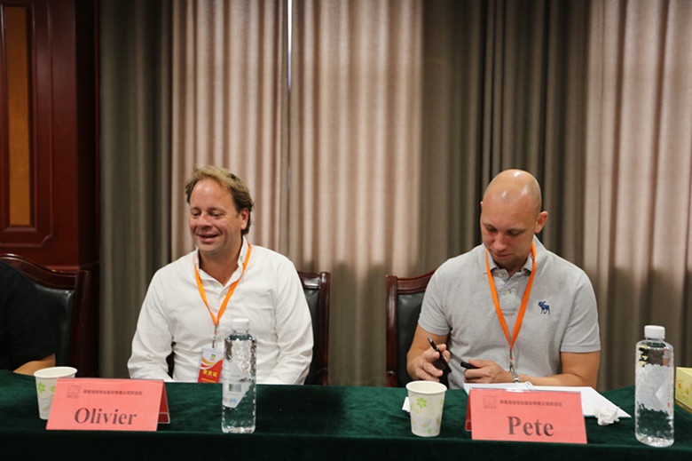 中午,Olivier一行接受湘佳牧業(yè)董事長兼總裁喻自文的邀請,在湘佳食品產(chǎn)業(yè)園中餐。