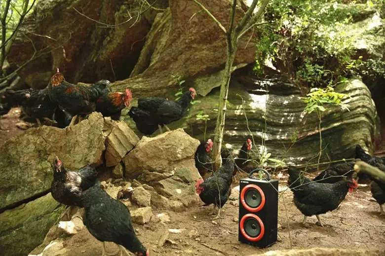 主人知我樂,音響放巖壁。