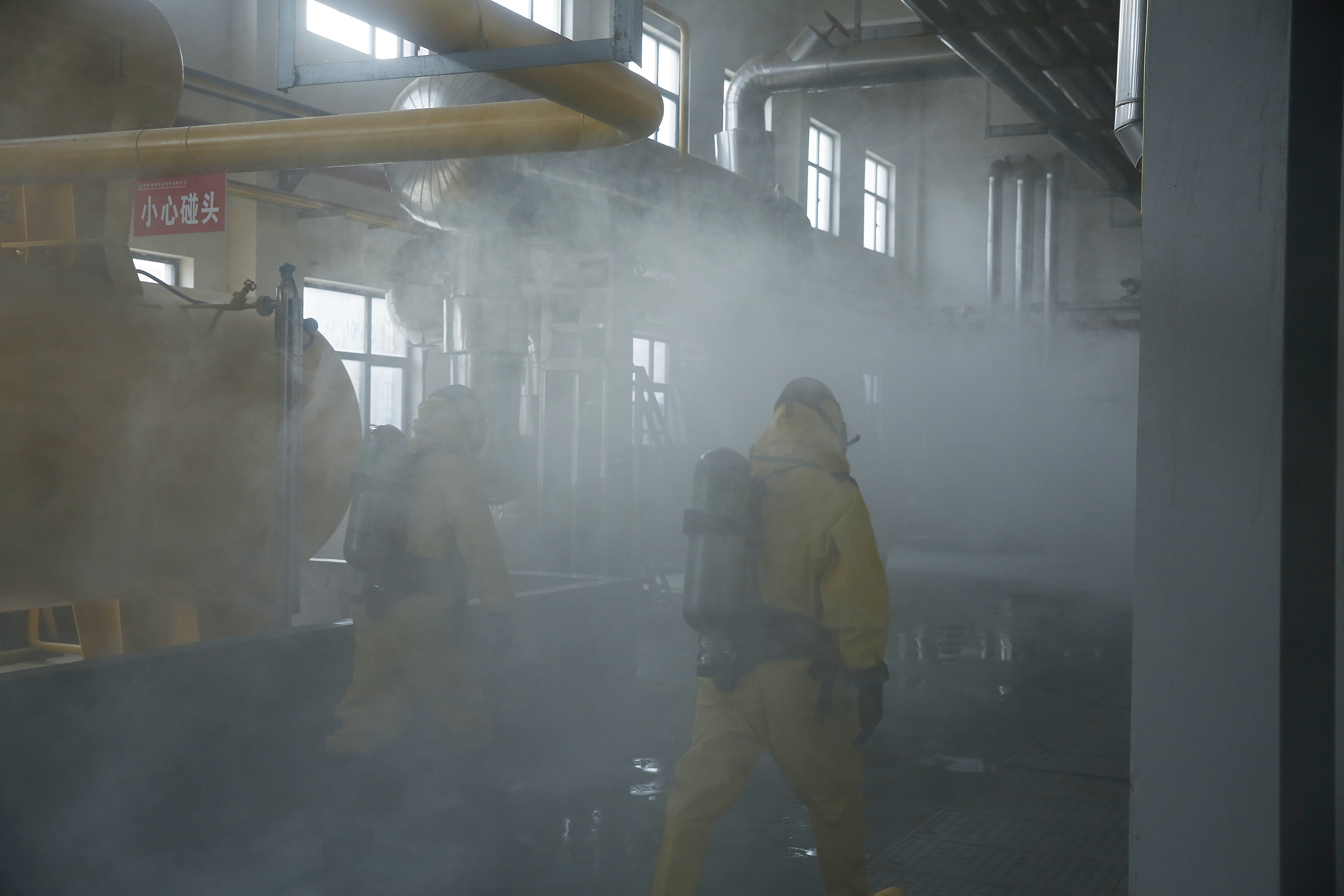 這次演練主要是模擬火災(zāi)發(fā)生、液氨泄漏的情景。